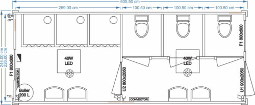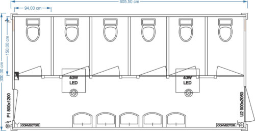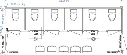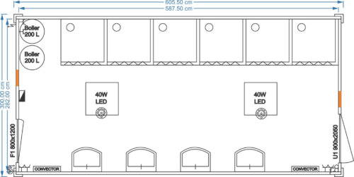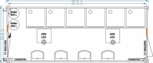 Unsere Konvektoren und Klimaanlagen bieten eine energieeffiziente Lösung für ganzjährigen Komfort – zuverlässig im Winter, effektiv im Sommer. Die werkseitige Installation durch FDC garantiert nicht nur optimale Leistung, sondern auch ein sauberes und sicheres System, das perfekt in die Containerstruktur integriert ist.