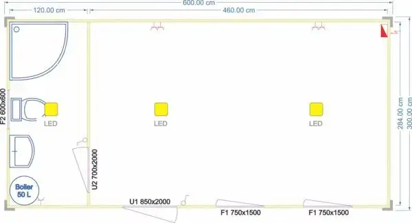 6,00×3,00 m Wohnmodul mit kompletter Badeeinheit, ideal als Tiny Home oder Gästehaus. Durchdachte Raumaufteilung, moderne Ausstattung und sofort einsatzbereit.